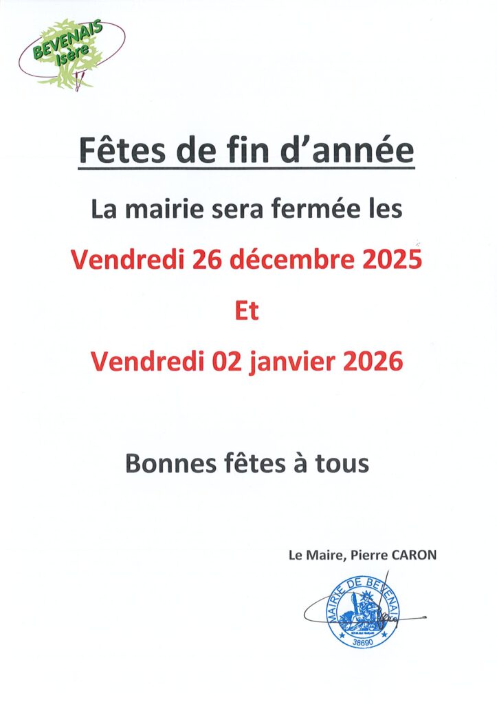 Fermeture Mairie : Fêtes de fin d’année